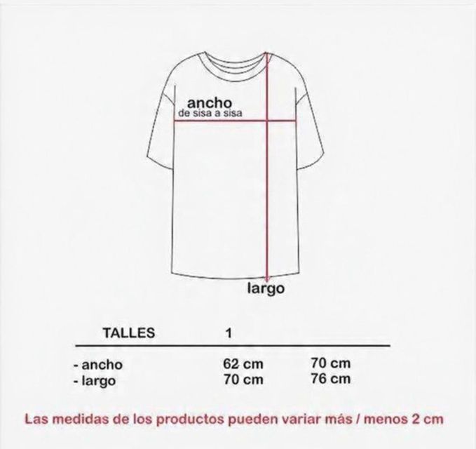 Las medidas pueden variar 1-2 cm de las expuestas. Puede tomar 1-2 cm de largo después del lavado.
